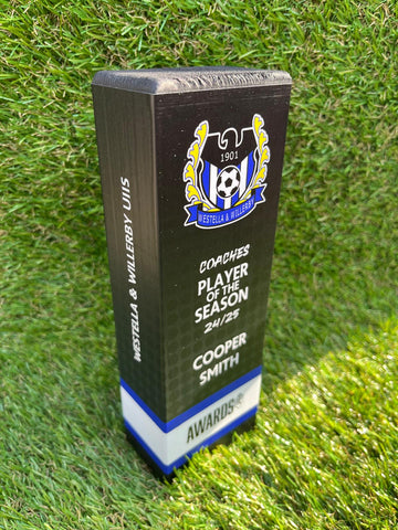 Ideal for football clubs, corporate awards and annual presentations, this personalised wooden trophy delivers timeless quality.